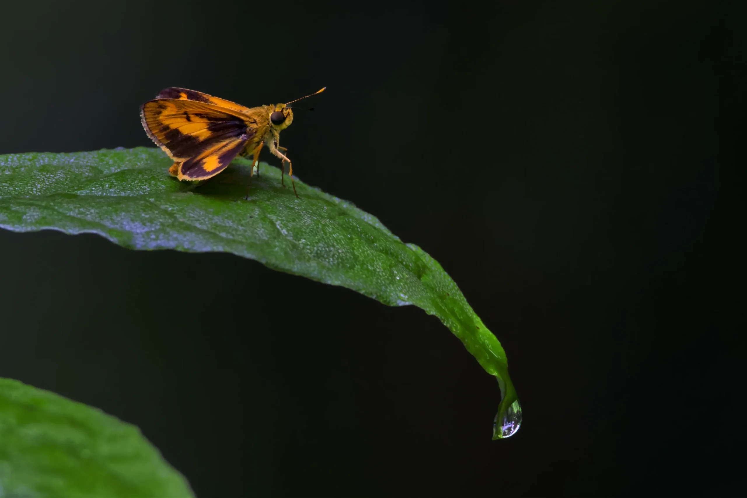 A small, fast-flying grass skipper distinguished by its vivid orange forewings with dark brown markings. Typically found in open grasslands, tea estates, and secondary vegetation. Adults frequently bask on low foliage and are active during sunny periods. Larvae feed primarily on grasses, making them important components of agro-ecosystem biodiversity.